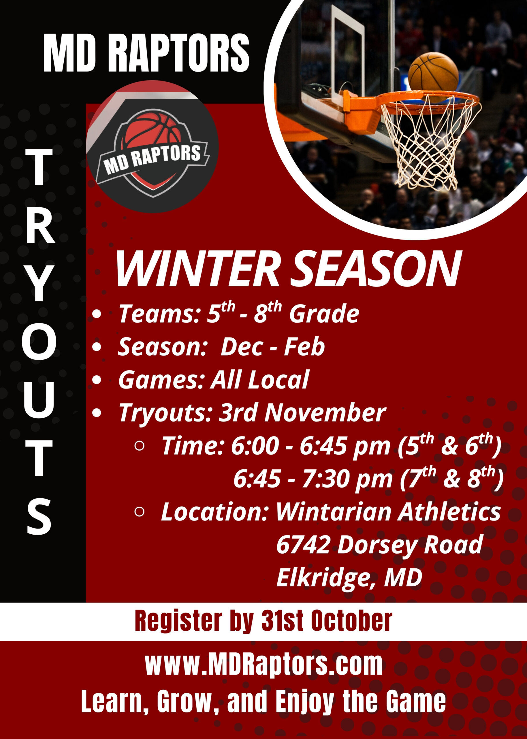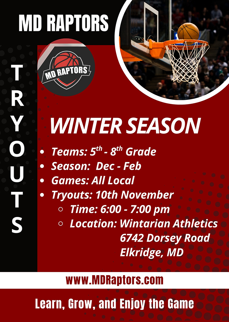 "The goal of the MD Raptors is not just to win but to help our players develop. If your child wants to learn and grow and enjoys competing - the MDRaptors is for them."